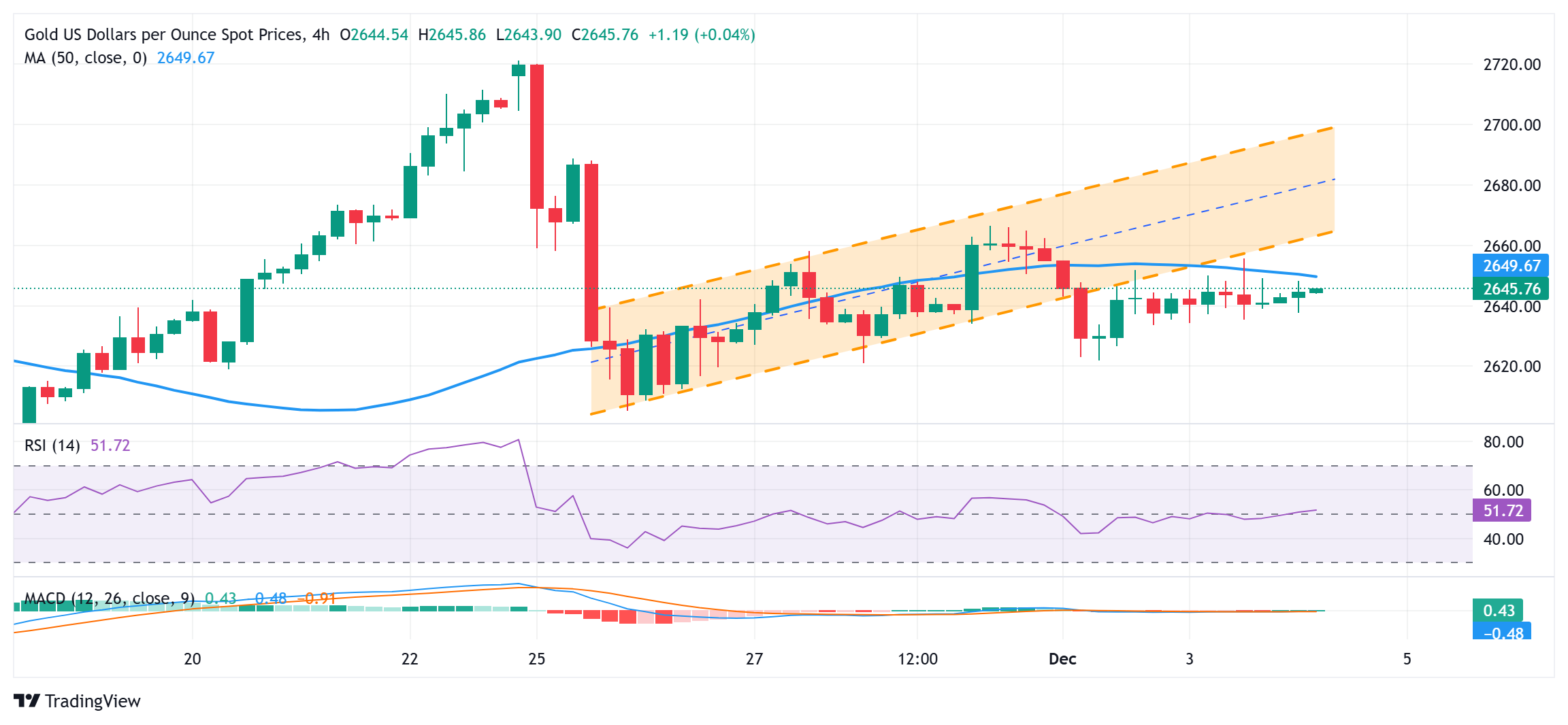金价展望:持续的地缘政治不确定性背景下,黄金/美元上升至2650美元周一亚洲时段,金价走高至 2,645 美元,日内涨幅为 0.52%。中国人民银行在 11 月暂停购买黄金六个月后恢复购买。交易商认为美联储在 12 月 18 日降息 25 个基点的可能性为 8...