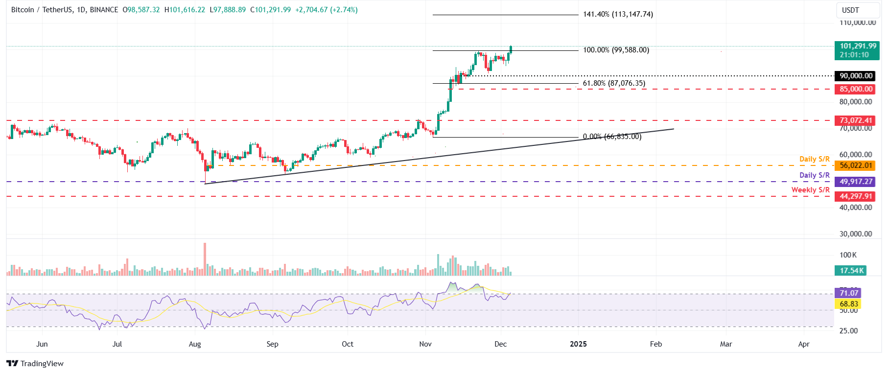比特币价格涨破10万美元大关比特币价格在周四涨破10万美元动能指标相对强弱指数(RSI)表明持续的上升趋势仍在延续。技术前景表明比特币将上扬至12.5万美元比特币(BTC)价格在上周近期回调后,于周四突破10万美元大关。动能指标相对强弱指数(RSI)表明上涨趋...